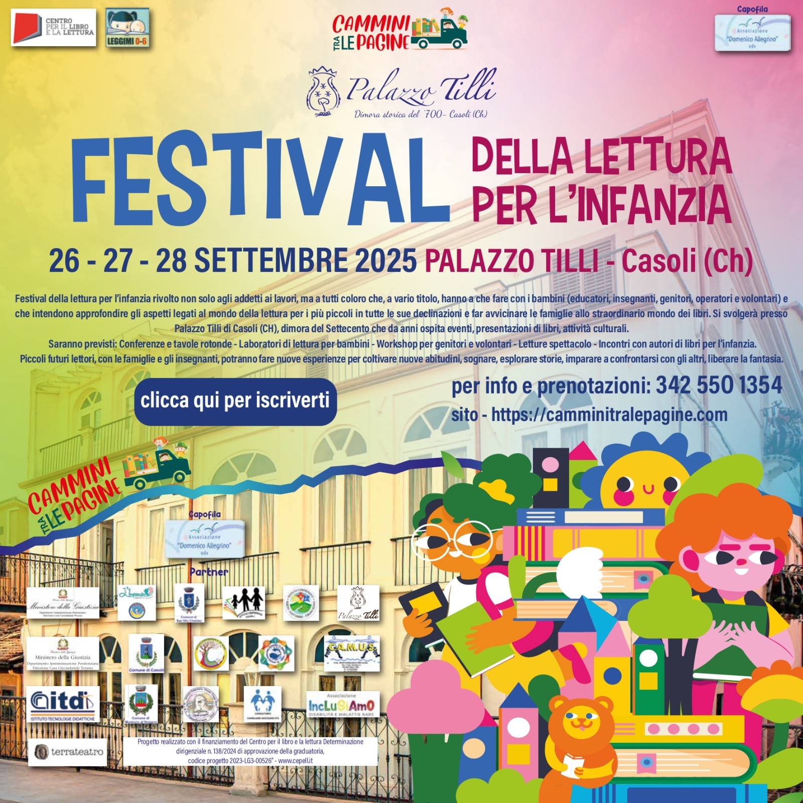 Festival della lettura per l'infanzia rivolto non solo agli addetti ai lavori, ma a tutti coloro che, a vario titolo, hanno a che fare con i bambini (educatori, insegnanti, genitori, operatori e volontari) e che intendono approfondire gli aspetti legati al mondo della lettura per i più piccoli in tutte le sue declinazioni e far avvicinare le famiglie allo straordinario mondo dei libri. Si svolgerà presso Palazzo Tilli di Casoli (CH), dimora del Settecento che da anni ospita eventi, presentazioni di libri, attività culturali.